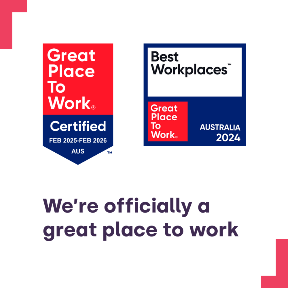 We’ve been certified as a a Great Place to Work® for 4 years in a row and in 2024 have also been named the 6th Best Workplace in Australia (micro category - under 30 employees)
