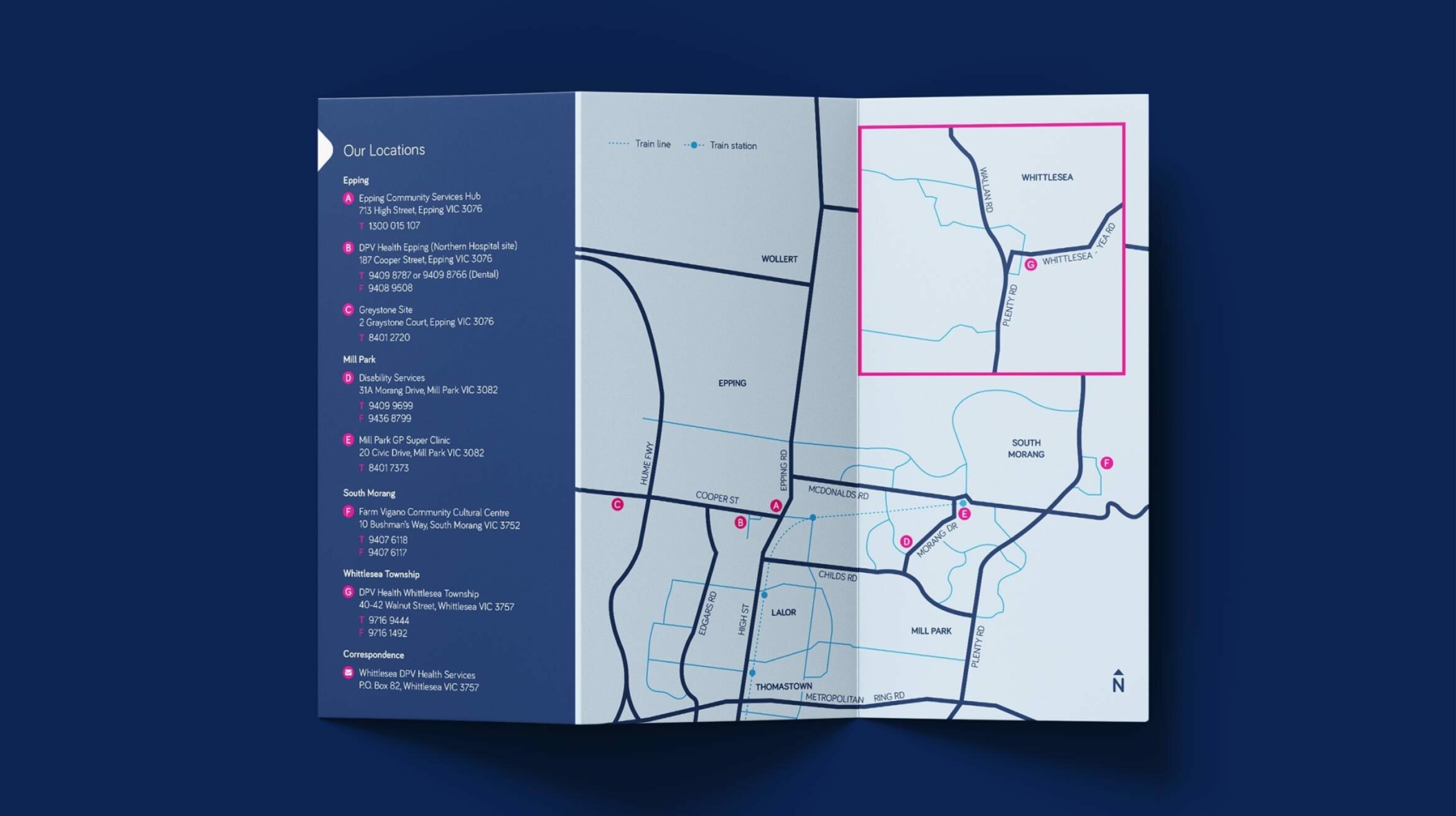 Featuring contrasting colours, soft fonts, circles and modular shapes, DPV Health’s new logo is representative of their inclusive and holistic service offering, the diversity in their community, the welcoming and friendly attitudes of their staff and their flexibility. The new DPV Health brand has since been rolled out across a variety of collateral ranging from brochures to staff uniforms.