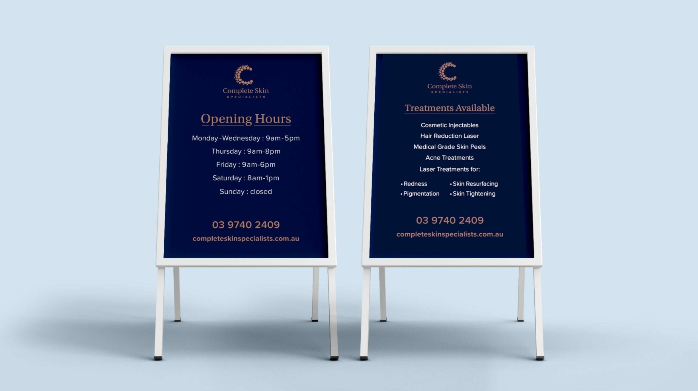 To target a more segmented and luxurious audience our design team elevated Complete Skin Specialists’ brand language.