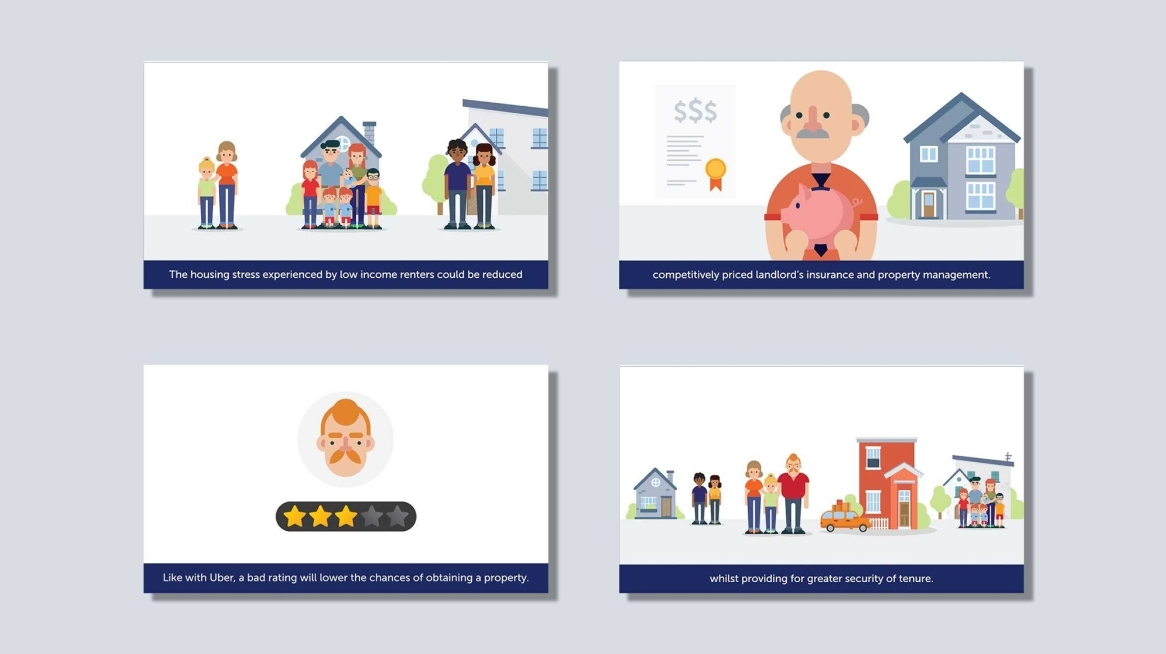 Our video production team was able to digest the key messages of the report to create succinct stories for each topic. These stories were then brought to life with illustrated and animated characters and events within the animated set, producing - with much love and care - an extended video series that will drive further awareness, research and implementation of AHURI’s important housing market insights.