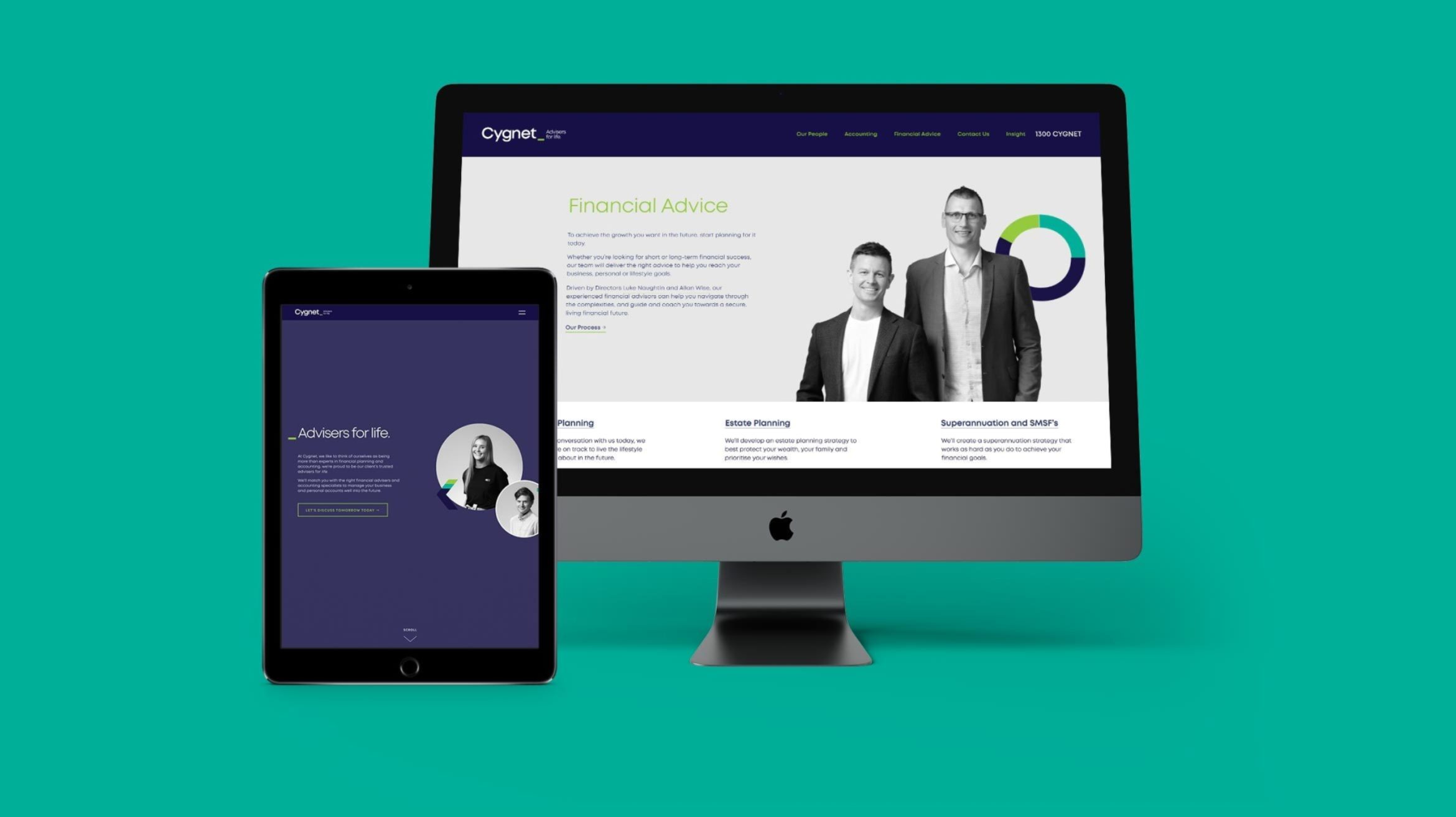 Custom-designed for the Squarespace platform, the website positions Cygnet as contemporary and timeless, elevating the company's new “advisers for life” manifesto. With custom animation and a responsive design, the website prioritises a simple user experience and removes complexity ordinarily associated with financial services.