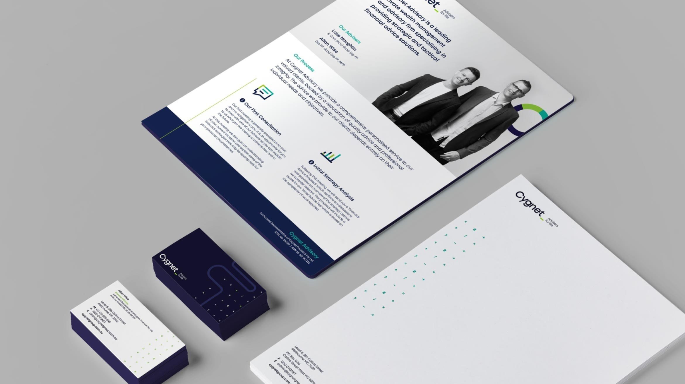 Cygnet’s colour palette, deep blues with highlight-near neon greens and whites, represents the traditions and conventions that are steeped in the financial service and accounting category. The dark navy blue adds a fresh and vibrant element, helping Cygnet to stand out.