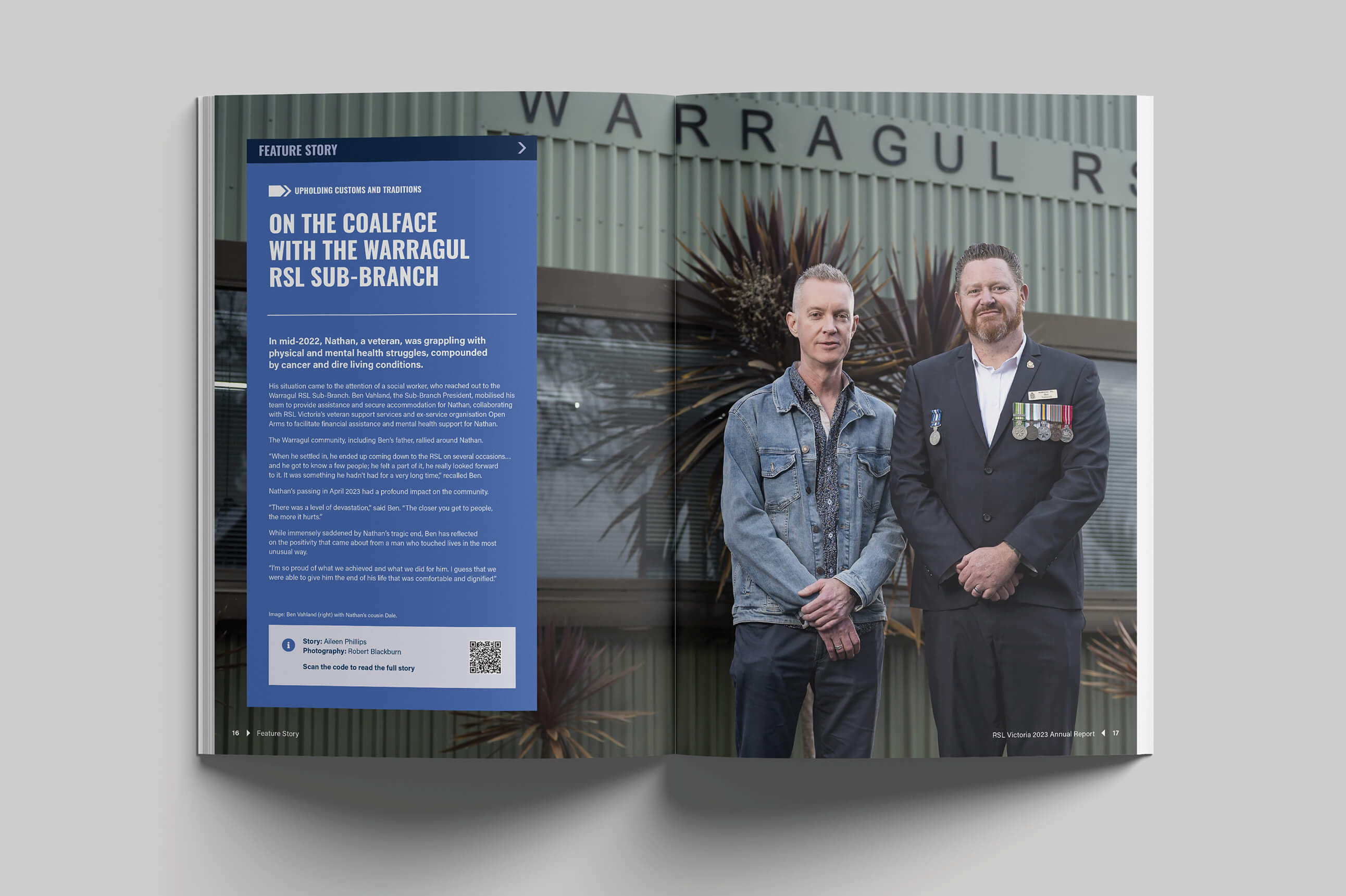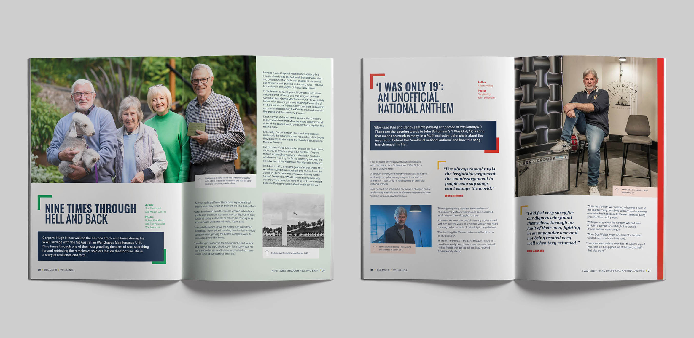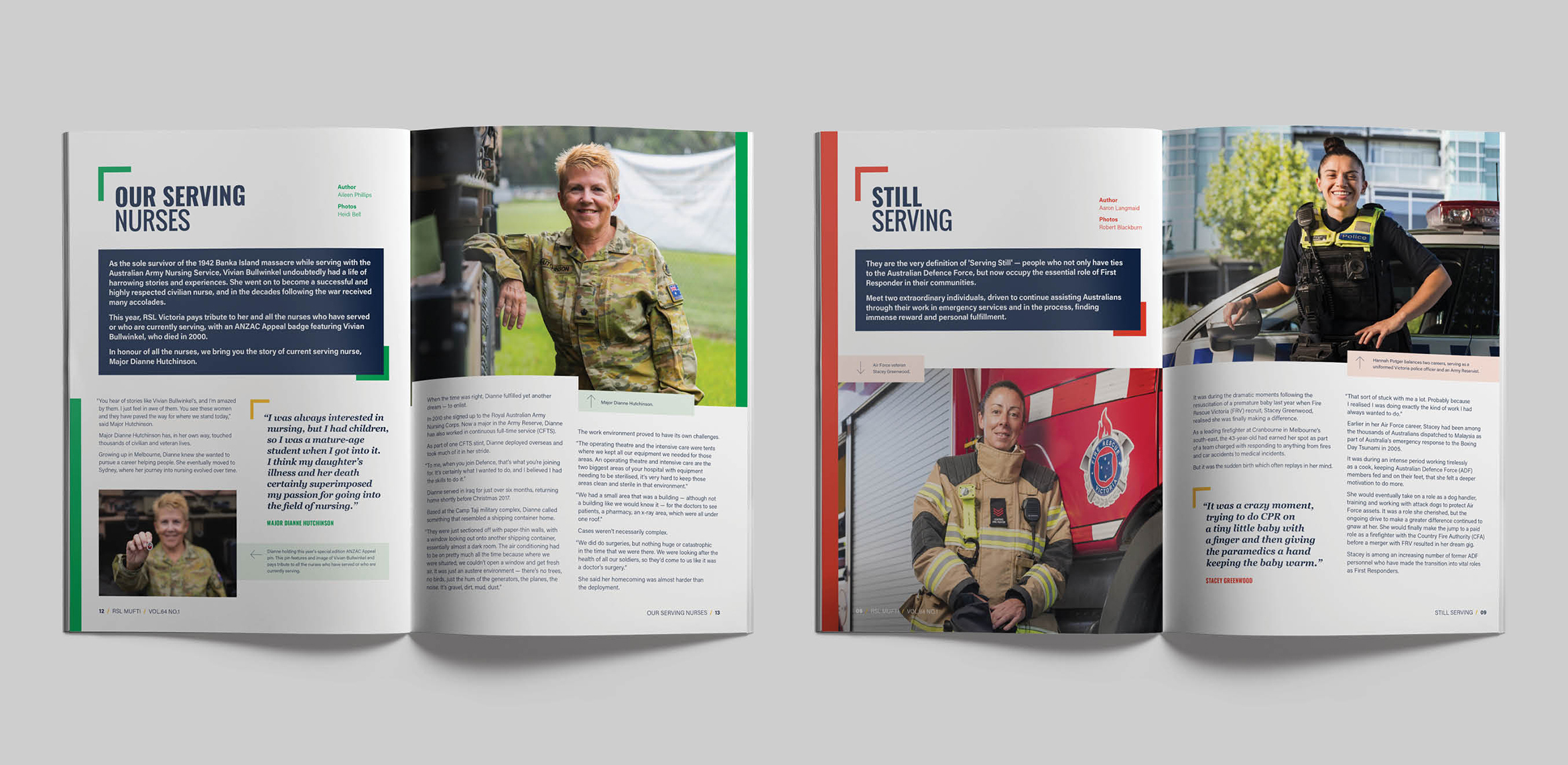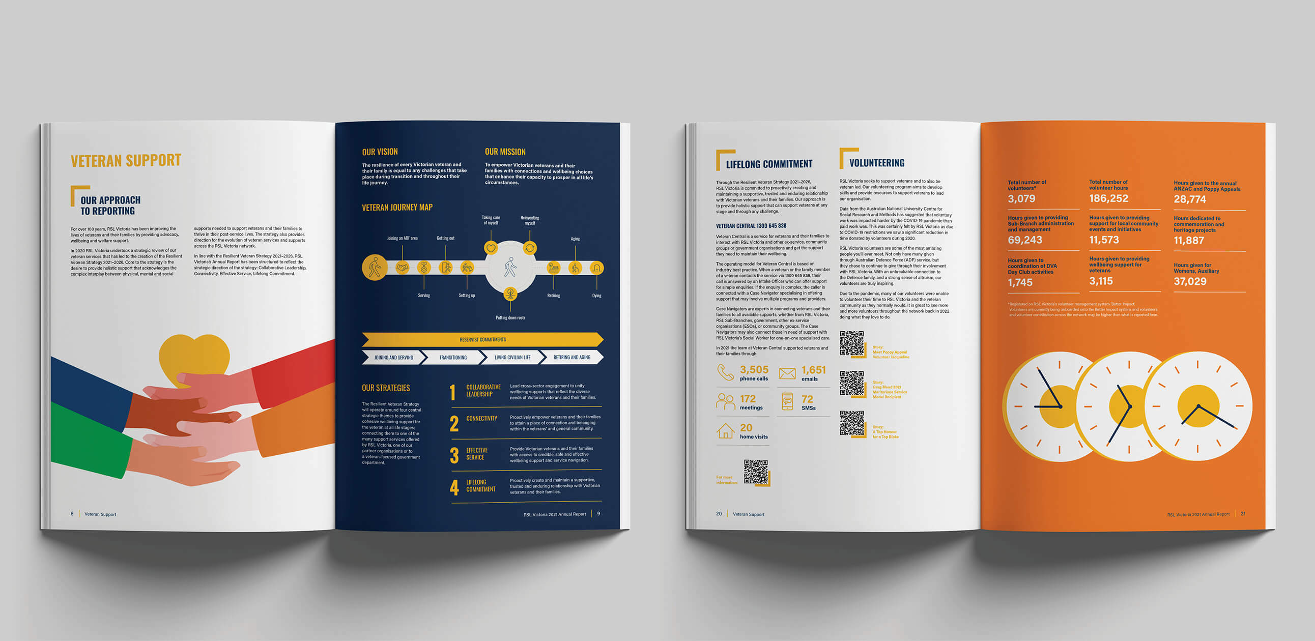 Over the years, we've collaborated with them on various design pieces and publications. From their Annual Reports to their bi-annual magazine MUFTI, to Anzac Day collateral like their event map, we’ve worked with RSL Victoria to make their content visually accessible, engaging, and functional for their wide-ranging audience.