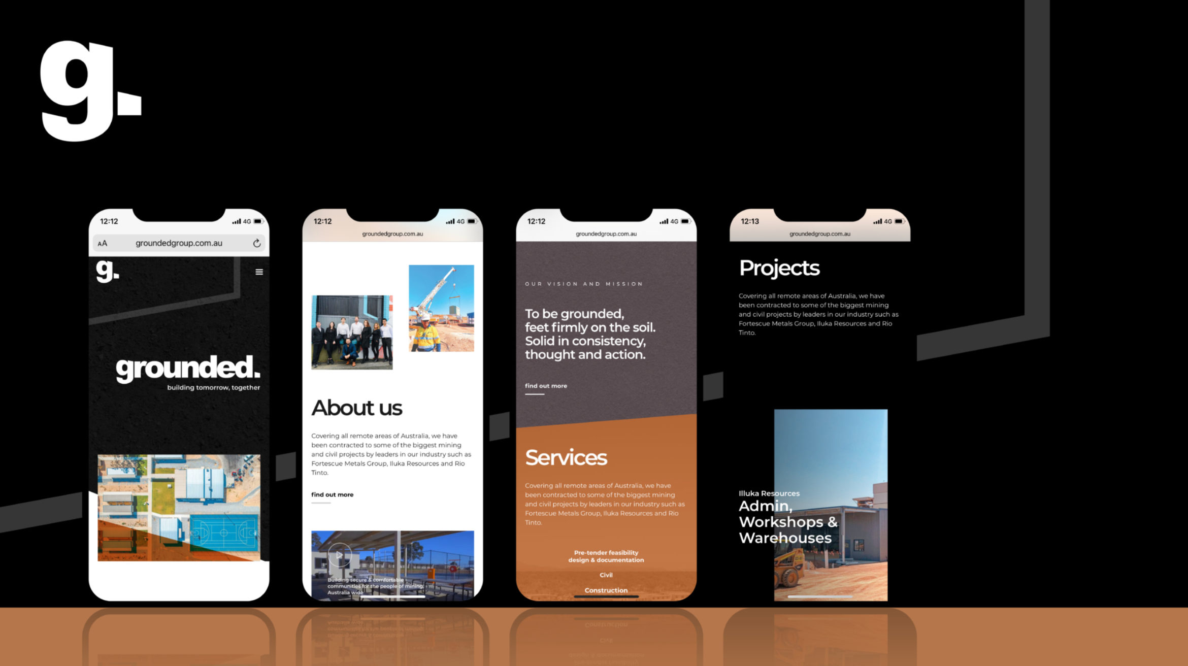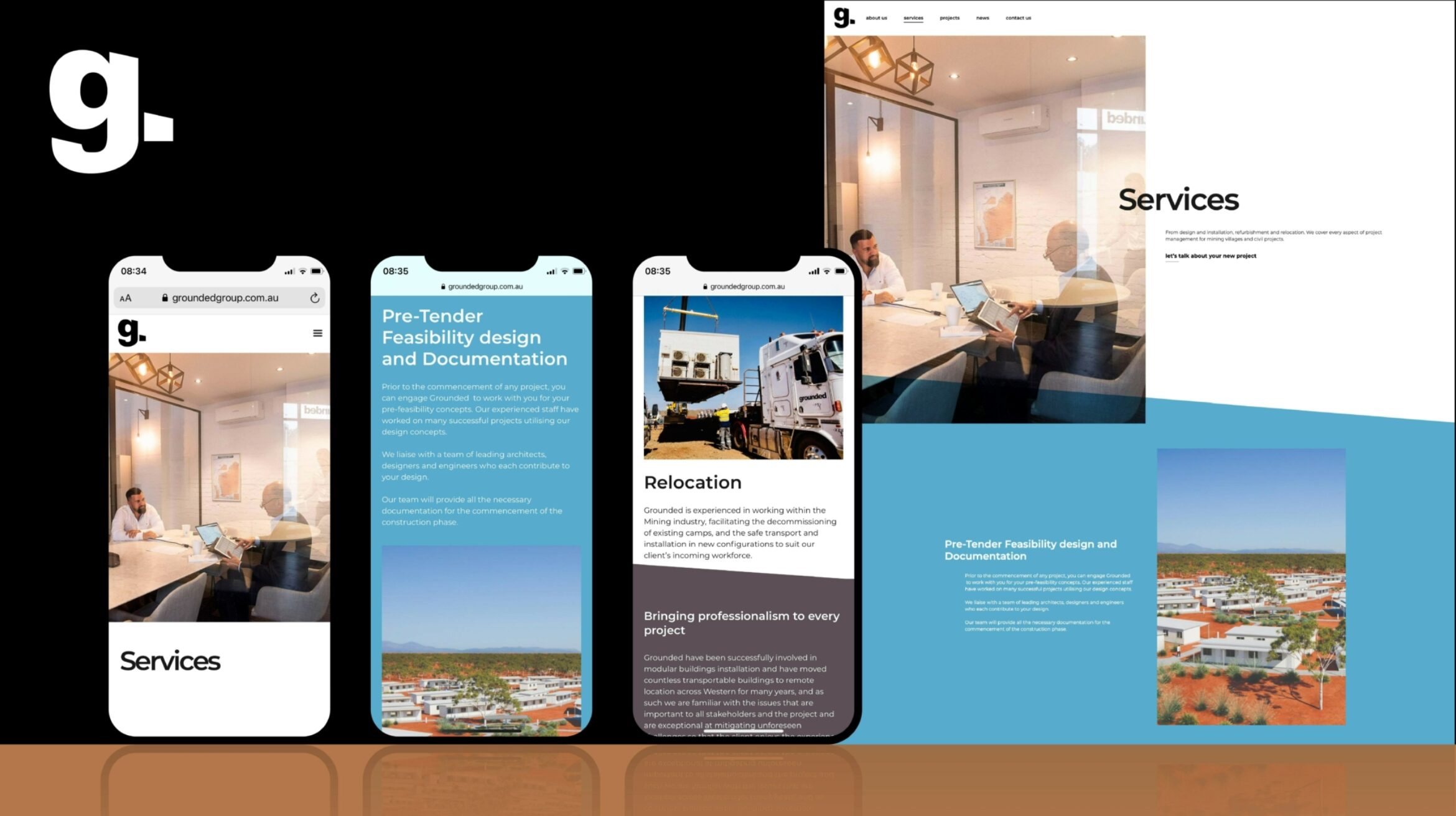 Leveraging the latest web design trends and focusing on the user experience resulted in a website with a slick, modern look and feel that proudly displayed Grounded Construction Group’s new branding. Creating the website on the Webflow CMS platform allowed us to generate beautiful animations and frontend functionality whilst keeping development costs to a minimum.