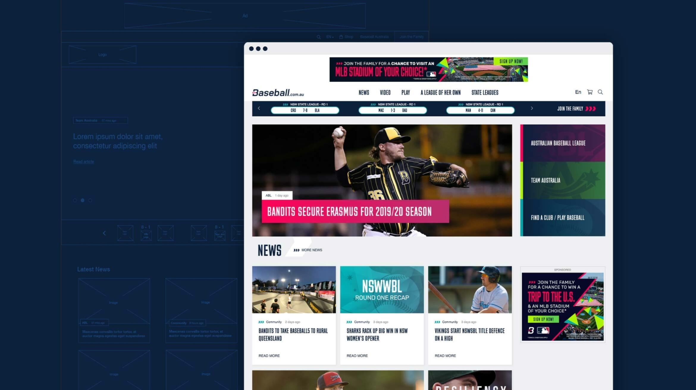 As a fan-driven brand, baseball.com.au needed to act as the epicenter of all activity. The revamped site needed to easily distribute content, optimise revenue-generating opportunities, process audience analytics, and reach a national and global market.