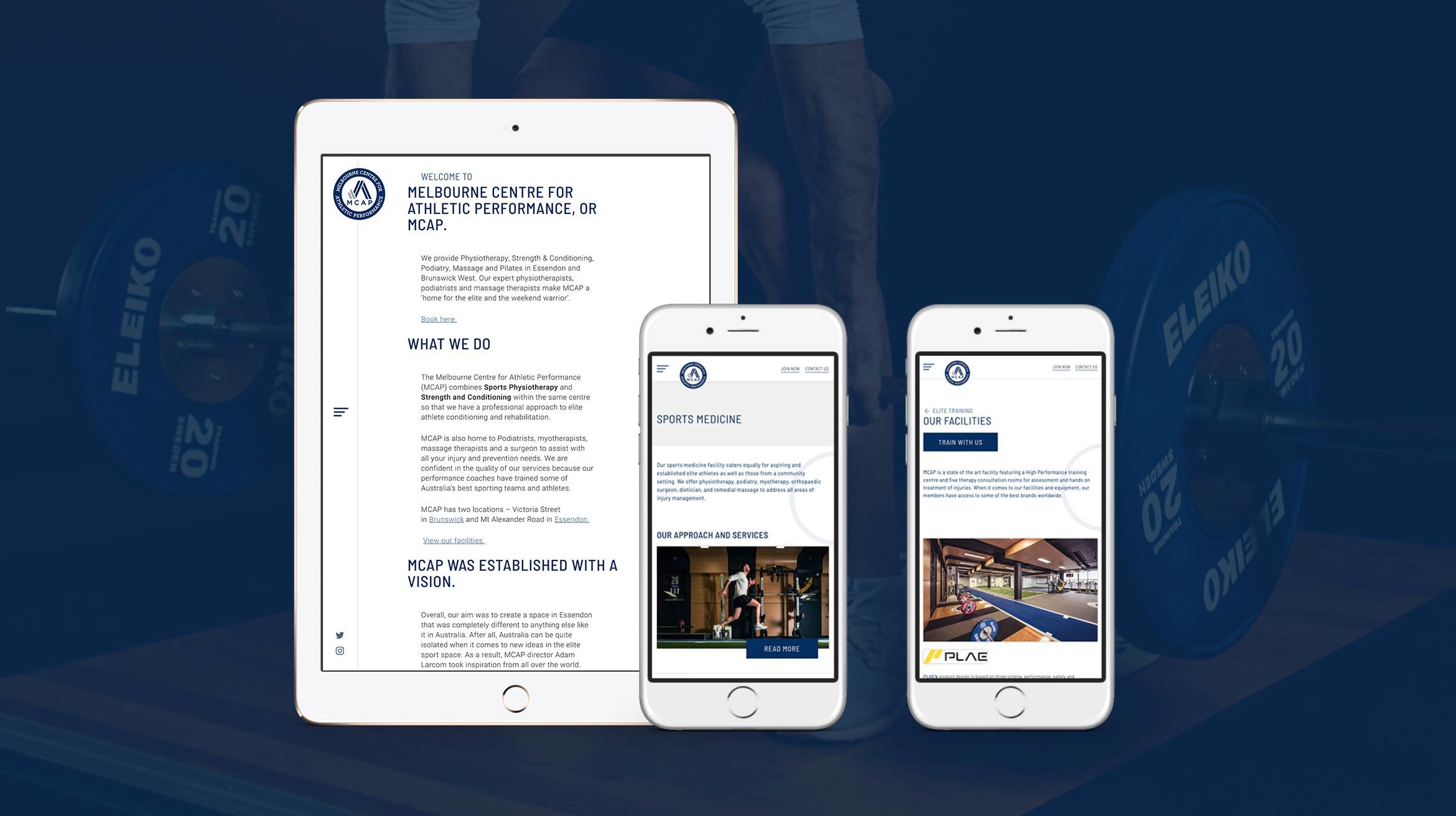 The result is a functional and aesthetic website that communicates MCAP's two core services (high performance training and sports medicine).